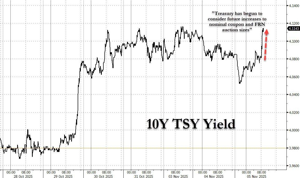 不过,展望未来,财政部在最新声明中补充称,已就未来扩大计息和浮动利率国债拍卖规模展开初步商谈,重点评估长期需求趋势,评估不同发行结构的潜在成本和风险。